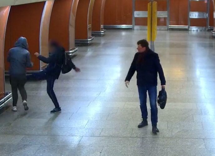 На станції Křižíkova невідомий виштовхнув агресора з потяга. Після чого той почав бити ногами і руками по зачинених дверях вагону. Окрім цього, цей чоловік вдарив ще одного пасажира у живіт, а іншого – по обличчю.