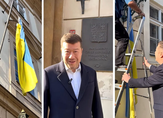 «Щойно я наказав зняти український прапор з будівлі Палати депутатів. Чехія — на першому місці», — заявив Окамура, посміхаючись у відео, оприлюдненому у Facebook.