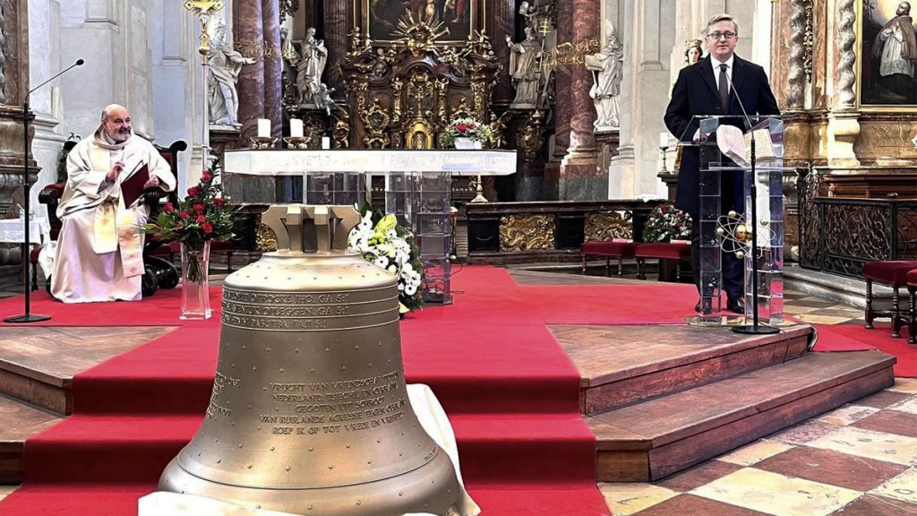 Дзвін був урочисто представлений у червні цього року за участі королеви Нідерландів Максими, а також президента Чехії Петра Павела та першої леді Єви Павлової. Його встановлення стало фінальним етапом міжнародного проєкту, який об’єднав Чехію, Нідерланди та Україну.