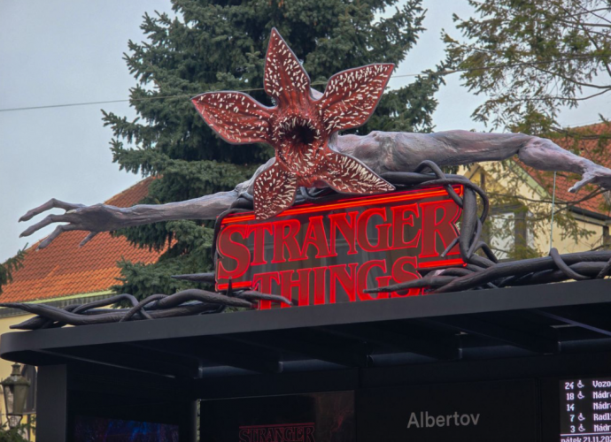 У Празі з’явилися трамвайні зупинки, оформлені у стилі серіалу Stranger Things. Netflix таким чином привертає увагу до фіналу популярного шоу, перетворивши частину міських зупинок на атмосферні «брами» в інший вимір.