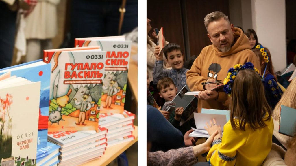 На зустрічі в Празі Фоззі презентує дві дитячі книги про Гупало Василя. Ці історії розраховані насамперед на дітей, але добре сприймаються і дорослими, адже поєднують гумор, пригоди та зрозумілі моральні орієнтири.