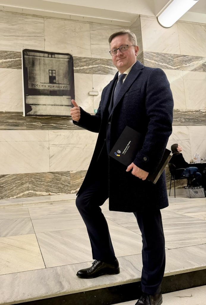Виставку відвідав посол України в Чехії. У своєму дописі Василь Зварич зазначив, що одна з представлених робіт містить чітке послання – саме фото з цією роботою поділився посол у своїх соцмережах. За його словами, воно передає позицію людей, які засуджують російську агресію.