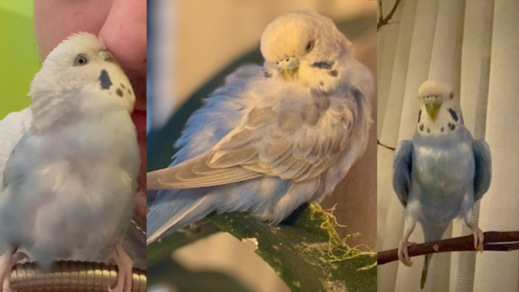 Орлічек — дворічний самець хвилястого папуги блакитно-білого кольору. Він не має кільця чи іншого маркування.